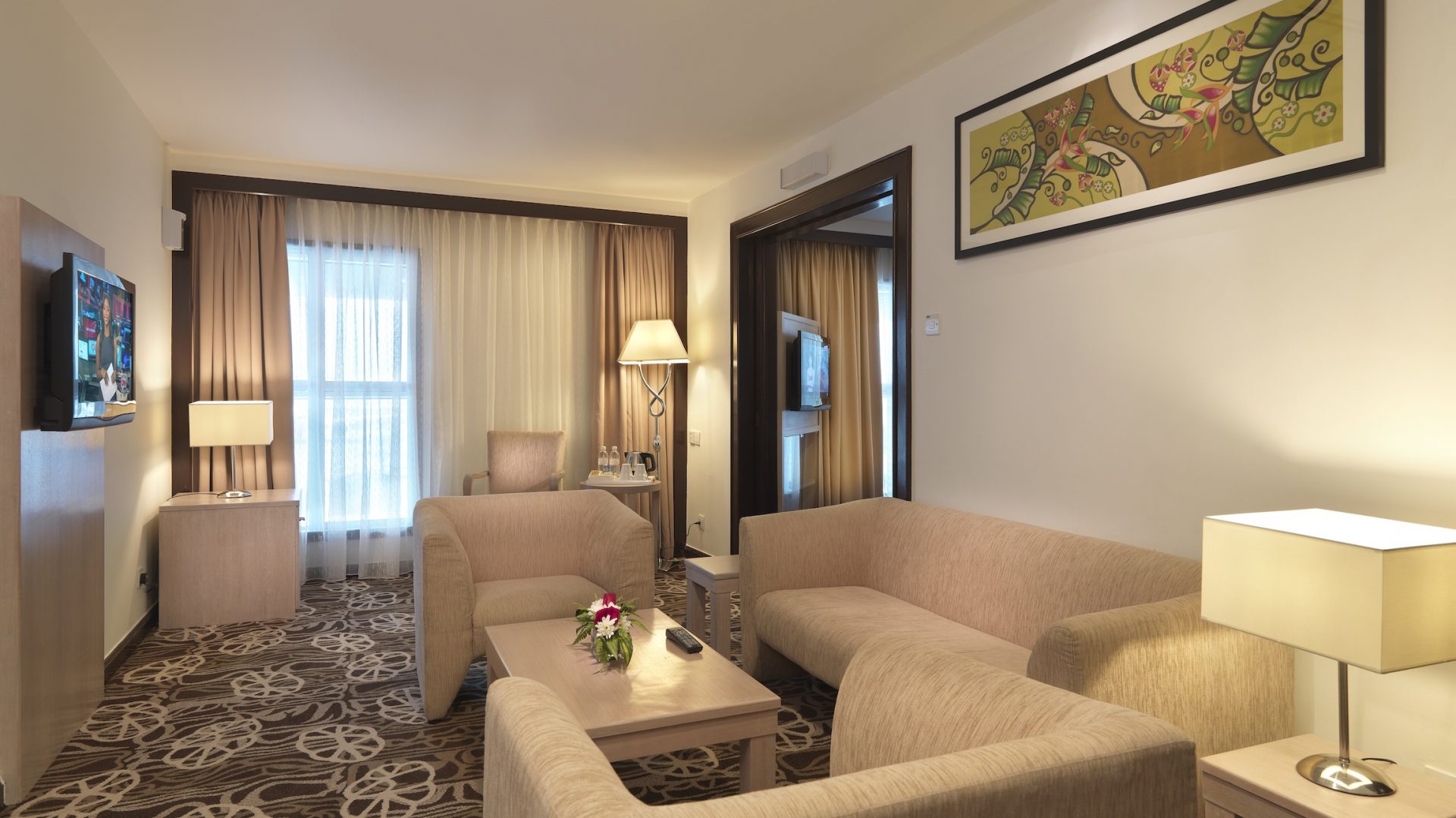 Our one and only Suite Room that offers a spacious and comfortable living space overlooking the runway. Equipped with flat screen televisions, in-room safe, complimentary wireless internet access and bath room amenities, the suite room is ideal for couples, individuals or small families.